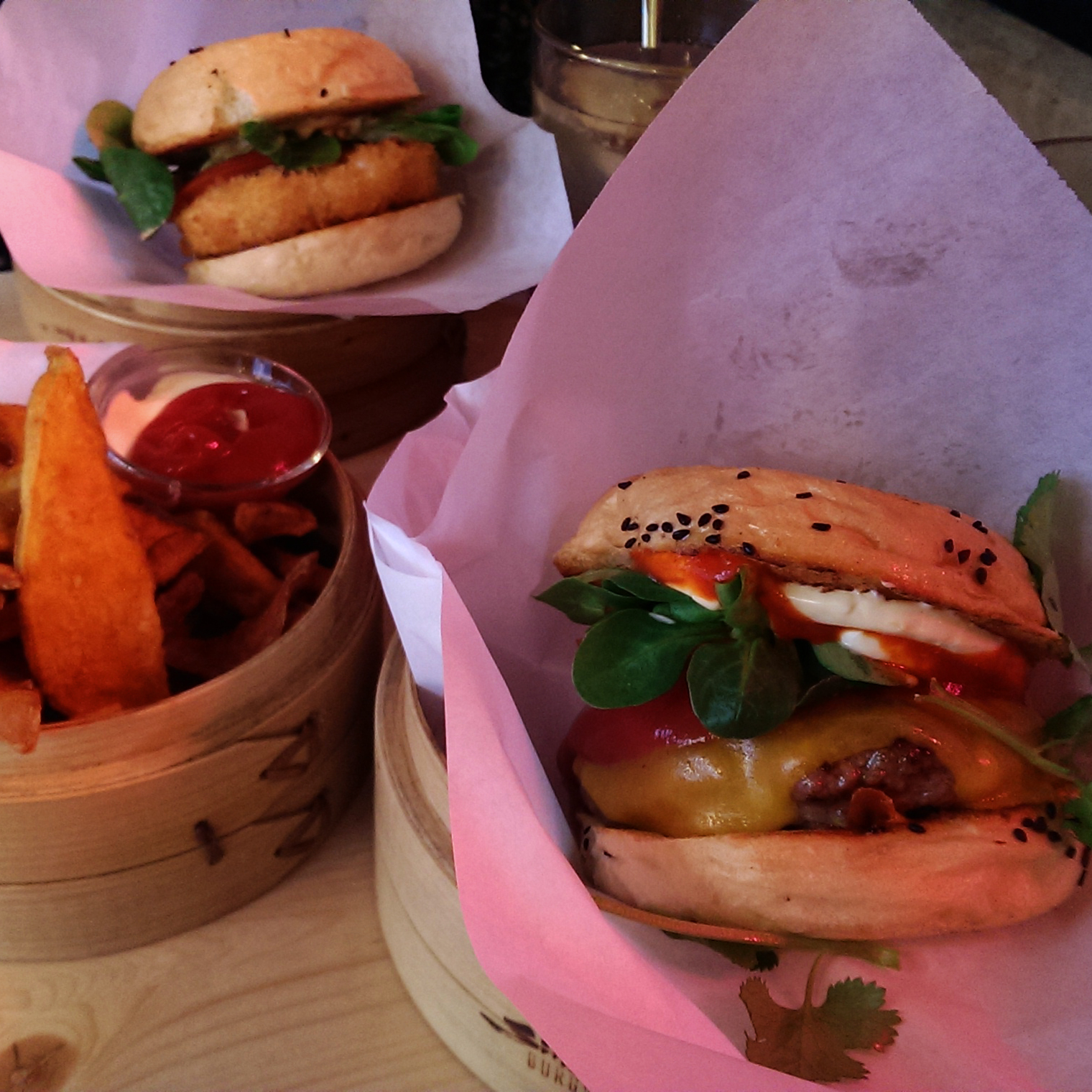 Wenn ihr gerne mal einen Burger der anderen Art essen möchtet, dann ist ein Asiaburger die richtige Idee. Ich habe mich bei Shiso für den Chilli Lemon Burger entschieden, da ich zwar ab und an gerne experimentiere, jedoch keine Riesengarnele oder Fisch auf dem Burger haben wollte. So wurde es also ein Beefburger aus Angus Rindfleisch. Wer möchte kann seinen Burger auch upgraden und Wagyu-Fleisch bestellen (+2,90€). Ich wusste ja, dass die Burger dort hübsch sind, aber SO hübsch! Hach, sehr fotogen das hübsche Stück. Geliefert wird der Burger dazu in diesen schönen Dumplingkorb sowie in einer Papiertüte, welche sich als hilfreicher Saucenauffangbehälter herausstelt.